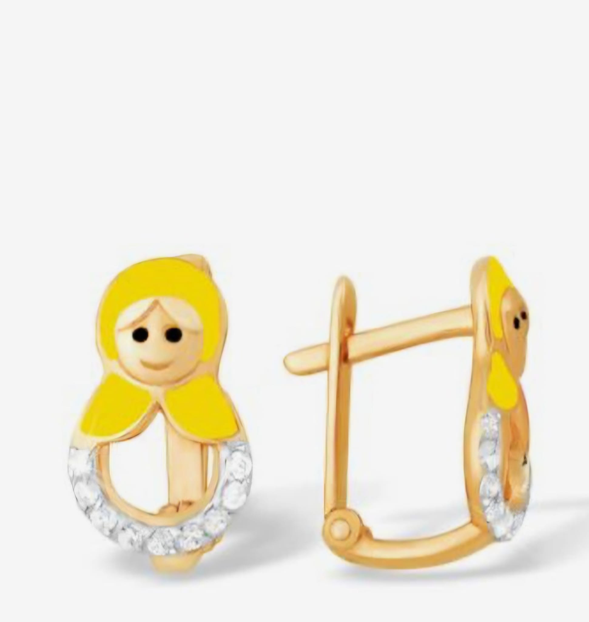 Złote Kolczyki Matrioszki z Żółtą Emalią i Cyrkoniami