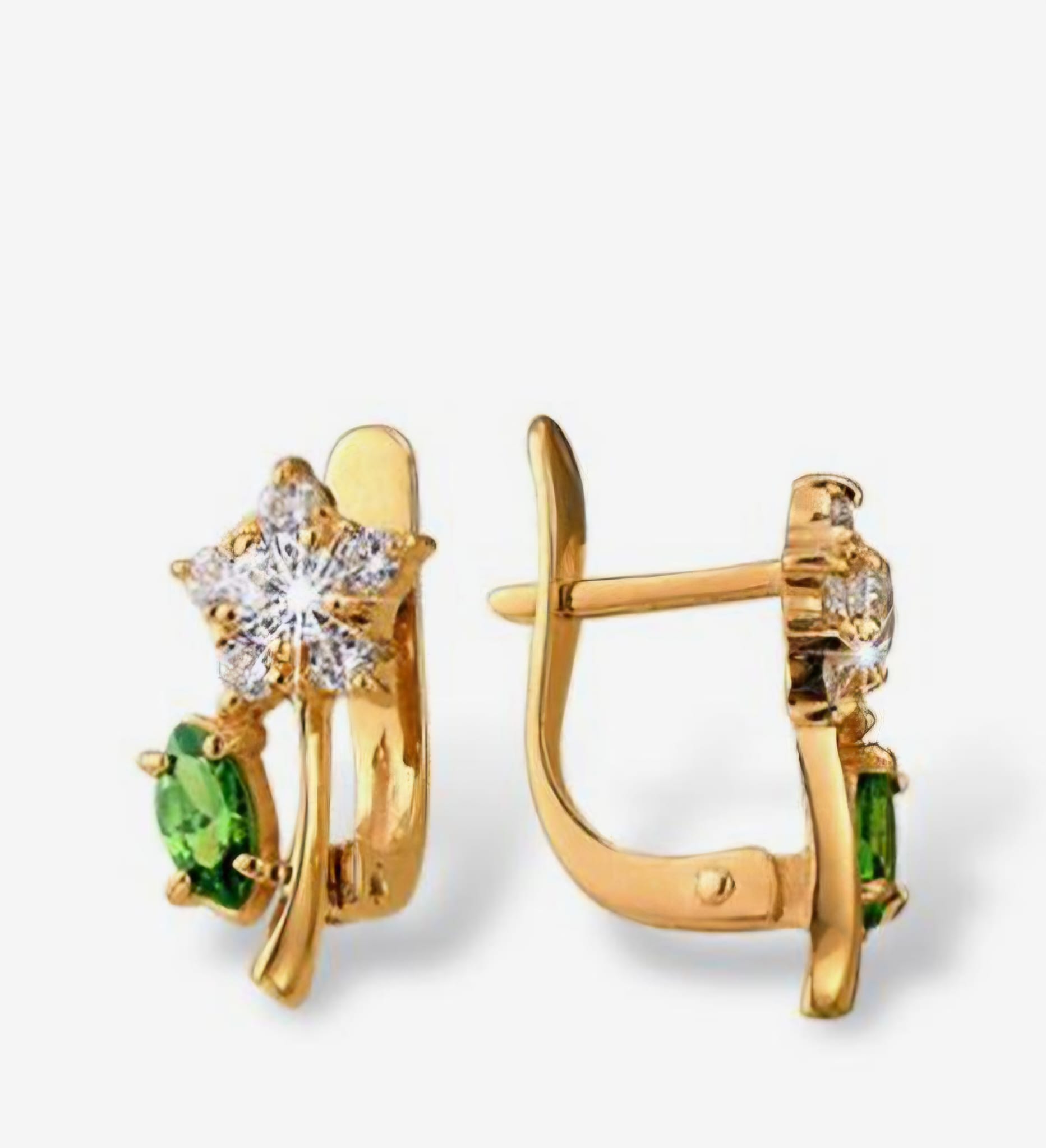 Złote Kolczyki dla Dzieci – Kryształowy Kwiatek i Zielony Listek