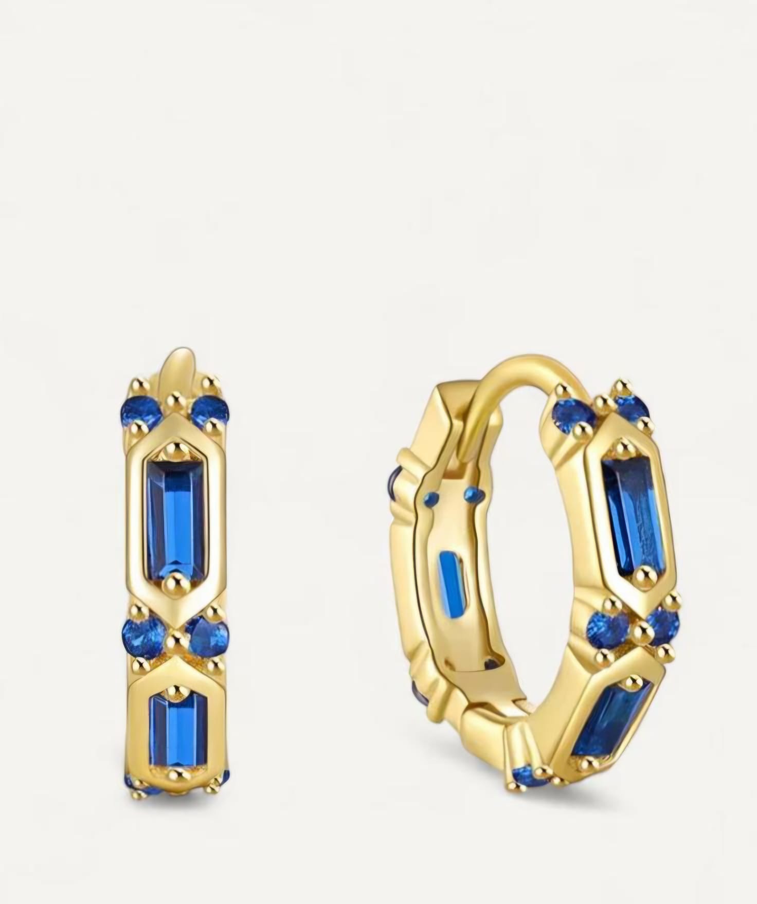 Złote Kolczyki Koła z Szafirowymi Bagietami i Cyrkoniami